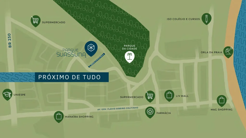 O Parque Suassuna está localizado em uma das áreas que mais cresce e se valoriza em João Pessoa. Ao lado do mais novo Parque da Cidade, que irá transformar a região, e próximo a shoppings, supermercados, padarias, farmácias, bares e restaurantes.